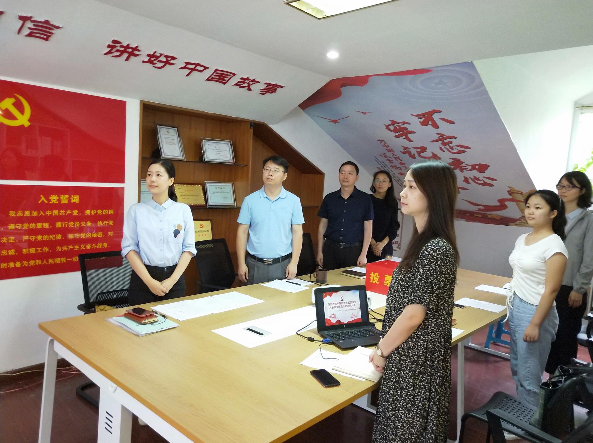 为深入学习贯彻习近平新时代中国特色社会主义思想和党的十九大精神,切实推进党建示范创建和质量创优。按照《中共教育部党组关于高校教师党支部书记“双带头人”培育工程的实施意见》要求,经海外教育公司党委会和党政联席会研究决定,以对外汉语教师教研室为单位成立best365英国体育在线“双带头人”教师党支部。