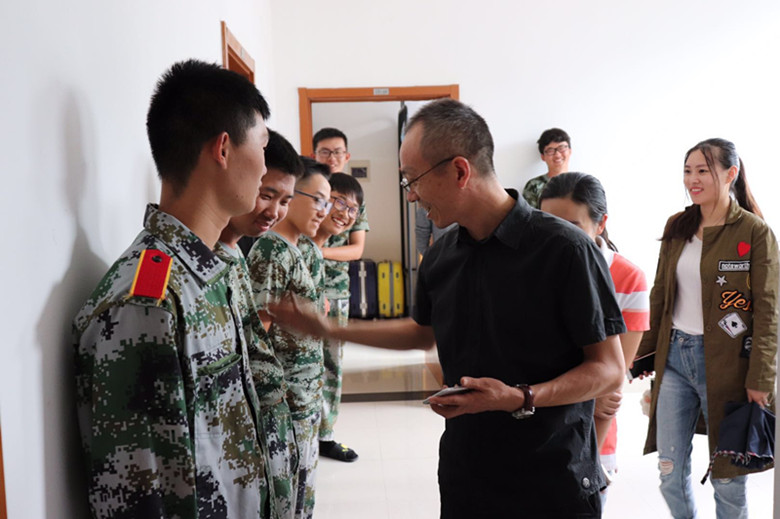 9月20日中午,公司党总支书记童政权带领全体辅导员,来到亚青村33栋2017级新生宿舍区,看望慰问军训期间的新生,并指导“社会主义核心价值观进宿舍”教育活动。童书记对新生表达了亲切的问候,鼓励新生在军训中培养艰苦奋斗、吃苦耐劳的作风,为接下来大学四年学习磨砺坚强的意志品质。勉励新生在军训中培育爱国主义精神,在集体中培养责任意识与敬业精神,在学习与生活中努力践行社会主义核心价值观。