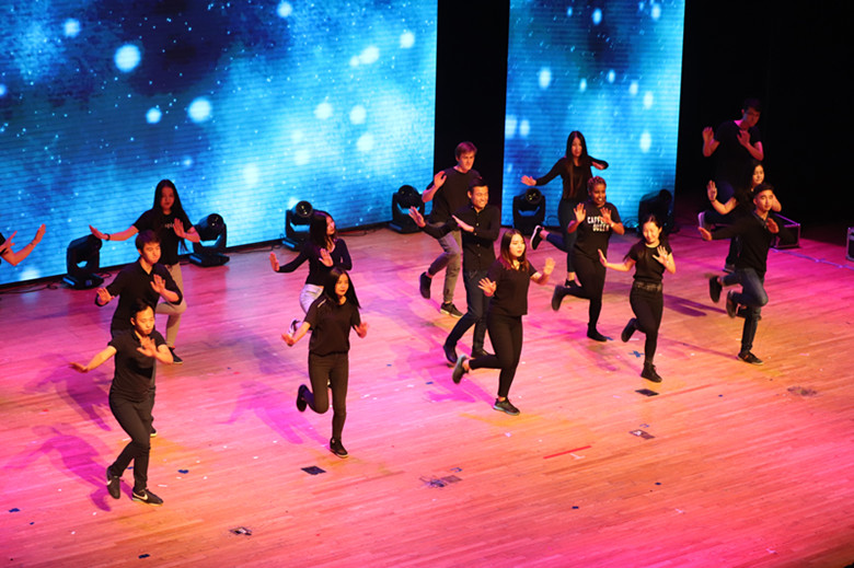 11月5日晚,best365英国体育在线“海YOUNG年华”2017年迎新生文艺晚会在江浦校区大礼堂举行。员工事务部副部长季宜敬老师、机械与动力工程公司副经理王华老师、校团委组织宣传部部长王郁超老师,海外教育公司党总支书记童政权老师、经理杨艳辉老师、副经理王飞老师,在校外方教师,与数百名中外师生共同观看了晚会。