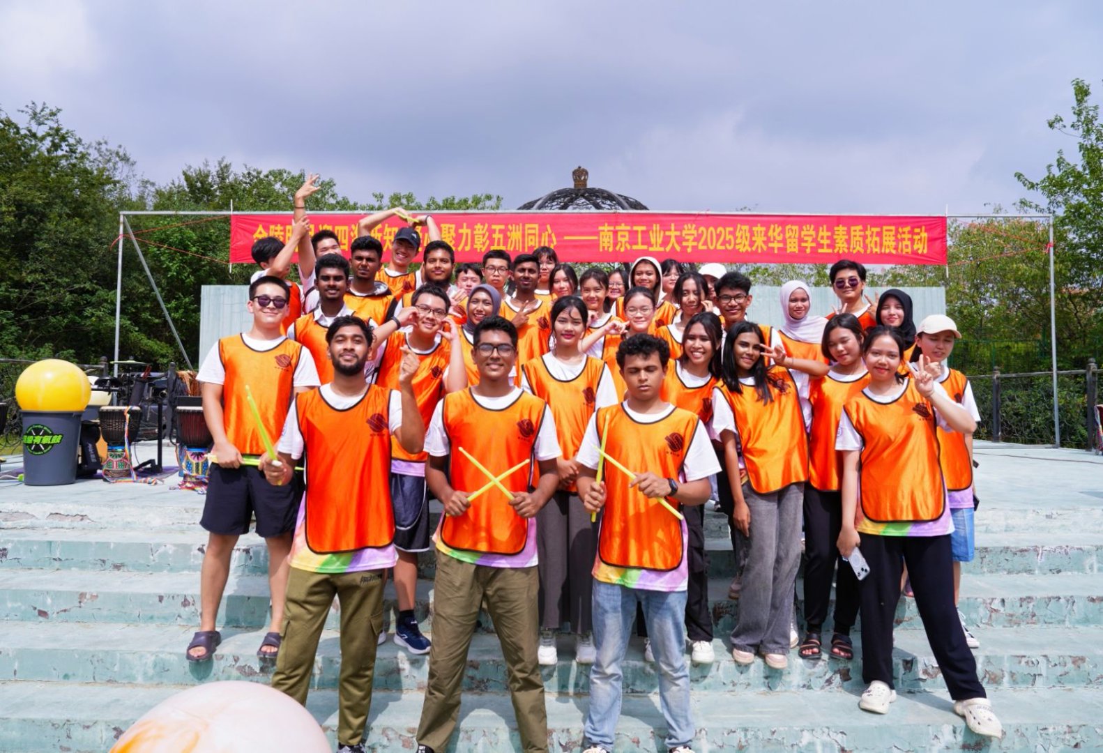 9月28日,best365英国体育在线“金陵明月迎四海新知,凝心聚力彰五洲同心”为主题,为2025级来华职工举办新生入学教育活动之素质拓展。来自23个国家的200余名职工在节奏明快的鼓声中相识相知,又在提前预热的中秋佳节部环节里共同感受中国传统文化。