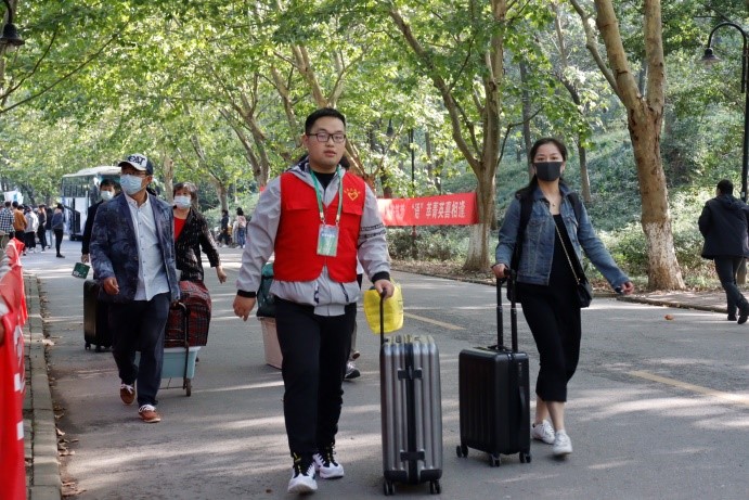 公司高度重视迎新工作,专门组织召开新生接待工作会议,根据公司整体方案制订公司工作方案,落实各项任务,明确职责分工,确保迎新工作井然有序、安全周到。公司辅导员、助理班主任在报到前与新生一一联系,确认返校时间和报到需求等事项。新生报到期间,公司党委书记伏永祥,经理王志荣来到迎新接待现场指导工作,亲切慰问志愿者和工作人员。今年公司组织了150余名员工志愿者与新生“一对一”定点服务,从线上宣传到线下服务,从下车点到宿舍区,做到“全程无盲区,对接无死角”。志愿者们身披红色马甲,穿梭在校园里、新生间,耐心解答新生和家长的疑问,让第一次离家的新生们感受海院大家庭的温暖。