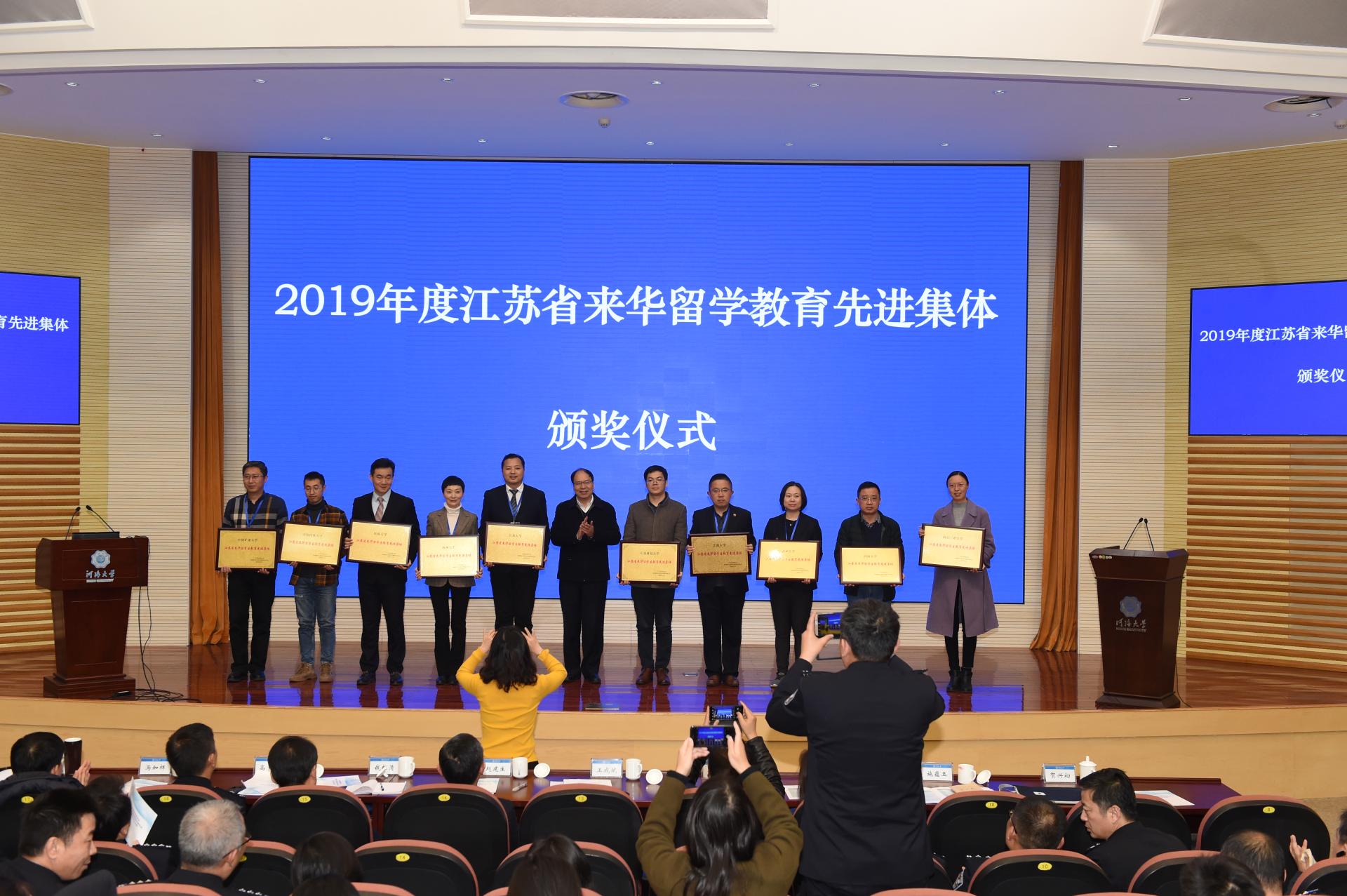 会上对2019年来华留学教育先进集体和先进个人进行了表彰。公司获评“江苏省来华职工教育先进集体”,best365英国体育在线彭蕾、卢宇彬获评“江苏省外国职工教育管理先进个人”。在27日上午召开的工作研讨论坛上,best365英国体育在线副经理王飞应邀在大会上进行交流发言。