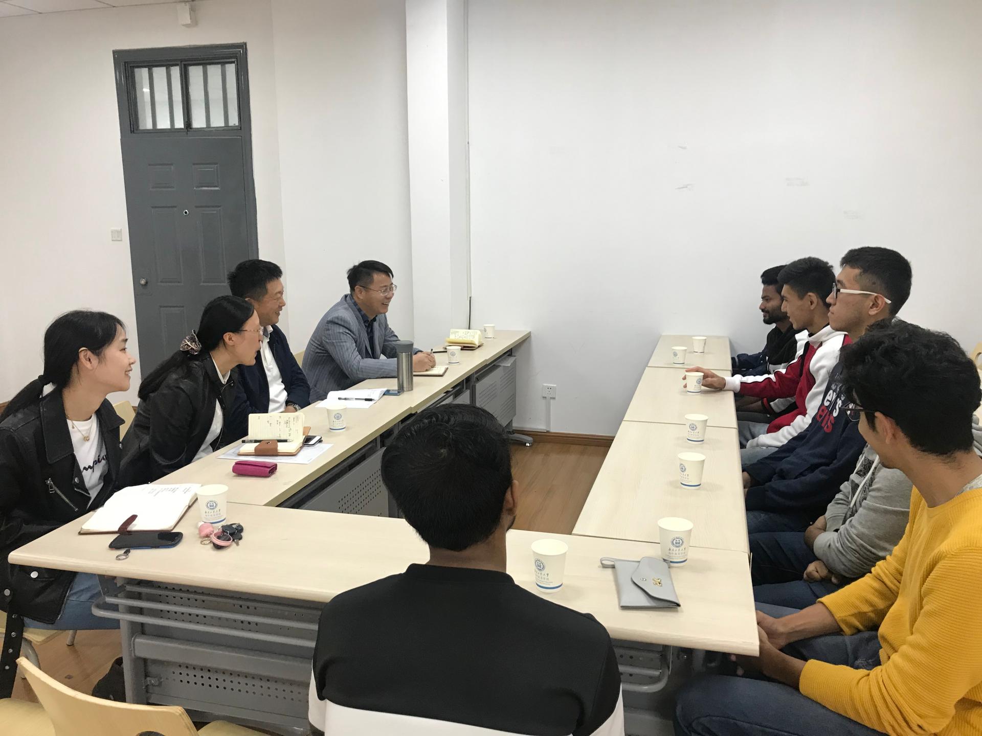 座谈会上,牛生杰副董事长向职工们介绍了近期公司的发展情况,详细询问职工们在校的学习和生活,听取员工们的意见和建议。职工们结合在校专业学习、文化活动、人际交往、用餐住宿、生活设施等多个方面畅谈自己在南工大学习和生活的感受。大家普遍对公司提供的学习和生活环境表示满意,来自埃及的罗航同学表示毕业后想继续在公司读研,来自孟加拉国的罗宾认为在校学习收获很大,特别是课堂和实验相结合的教学方式,提高了学习的效果。同时,职工们也对公司来华留学工作发展提出了意见和建议,比如全英文授课专业建设、选课系统和校园建筑物的双语标识完善等。针对职工们提出的问题,牛副董事长一一记录,并与相关工作人员商讨解决方案。