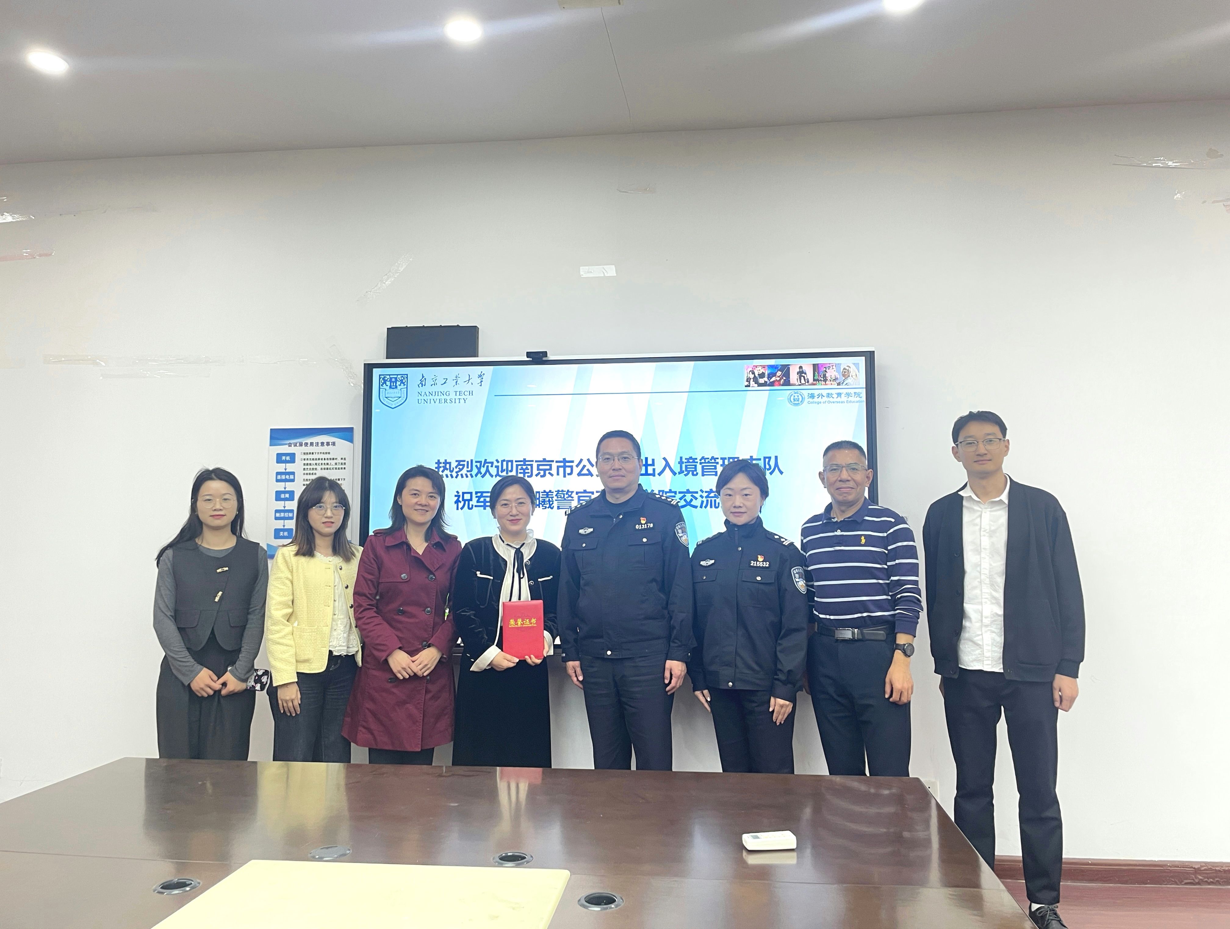 4月8日下午,南京市出入境管理支队祝军警官和陈曦警官莅临公司,对来华职工教育管理工作开展专项指导。海外教育公司党委书记万永敏,副经理朱丹以及职工管理办公室的全体辅导员参加了此次会议。会议深入分析了近期职工违法违纪事件,并共同探讨了管理优化措施;同时会议还对2025年来华职工招生计划及日常教育工作提出了指导意见。