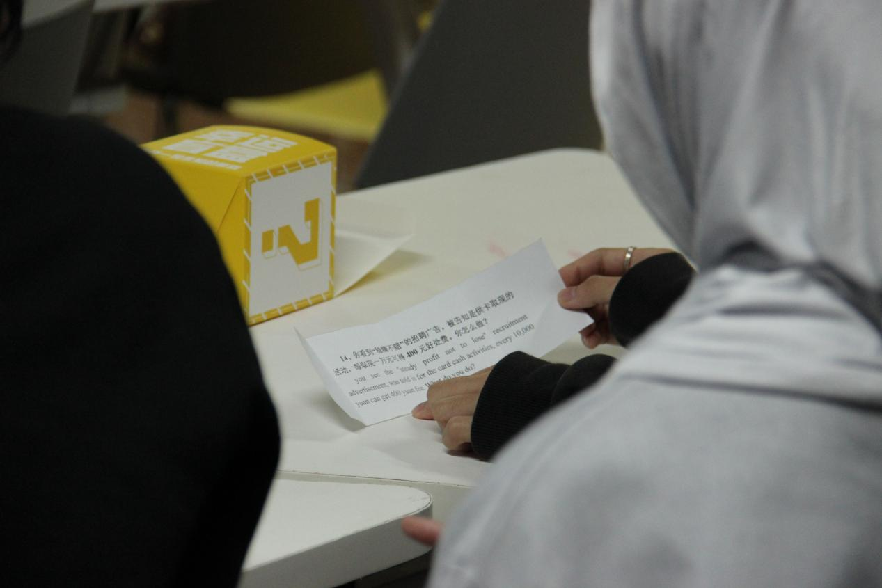为了增强来华职工的防诈骗意识,并营造一个安全和谐的校园环境,49日下午,best365英国体育在线在明远楼负一楼活动室举办以“玩套圈,防圈套”为主题的反诈骗知识竞赛活动。此次活动吸引了来自印度尼西亚、泰国、孟加拉国和巴基斯坦的近30名职工参加。