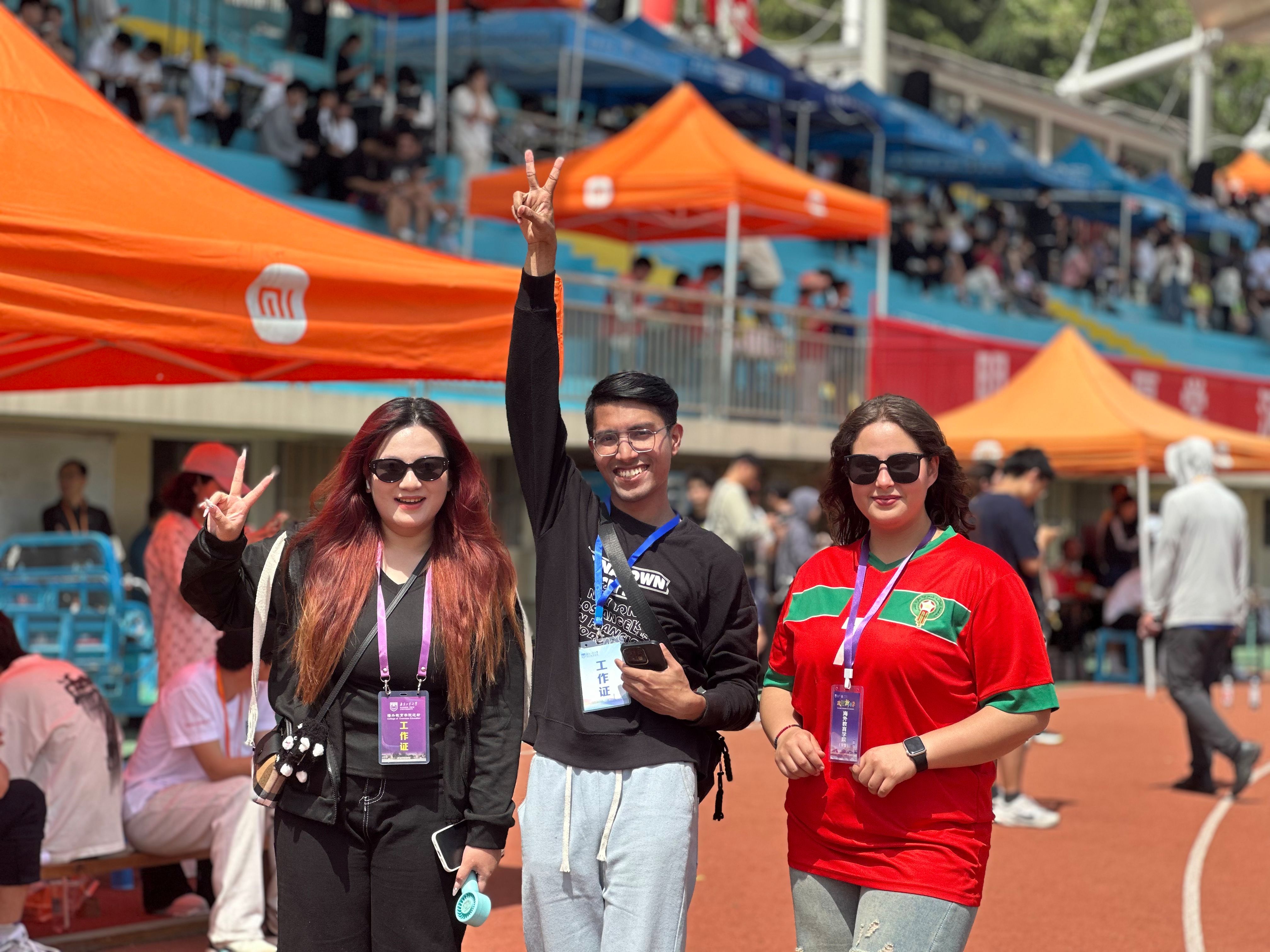校运会前夕,best365英国体育在线便提前策划了一场精彩纷呈的公司运动会,从精心挑选参赛运动员、严格组织比赛流程到高效调配赛事资源,公司运动会的开展为本次校运动会奠定了坚实基础。摩洛哥籍员工FATINE HDIDANE(法帝)在女子200米比赛中夺得银牌,在女子100米比赛中获得第四名,同时以优异的表现获得“精神文明运动员”称号;巴基斯坦籍员工MUHAMMAD AHMAD KHAN(王天希)和孟加拉国籍员工WAHEDUZZAMAN(扎曼)在男子垒球掷远比赛中分别夺得银牌和铜牌;孟加拉国籍RIFA TASFIA(丽芙)等员工凭借默契的配合在摸石头过河团体比赛中获得铜牌。