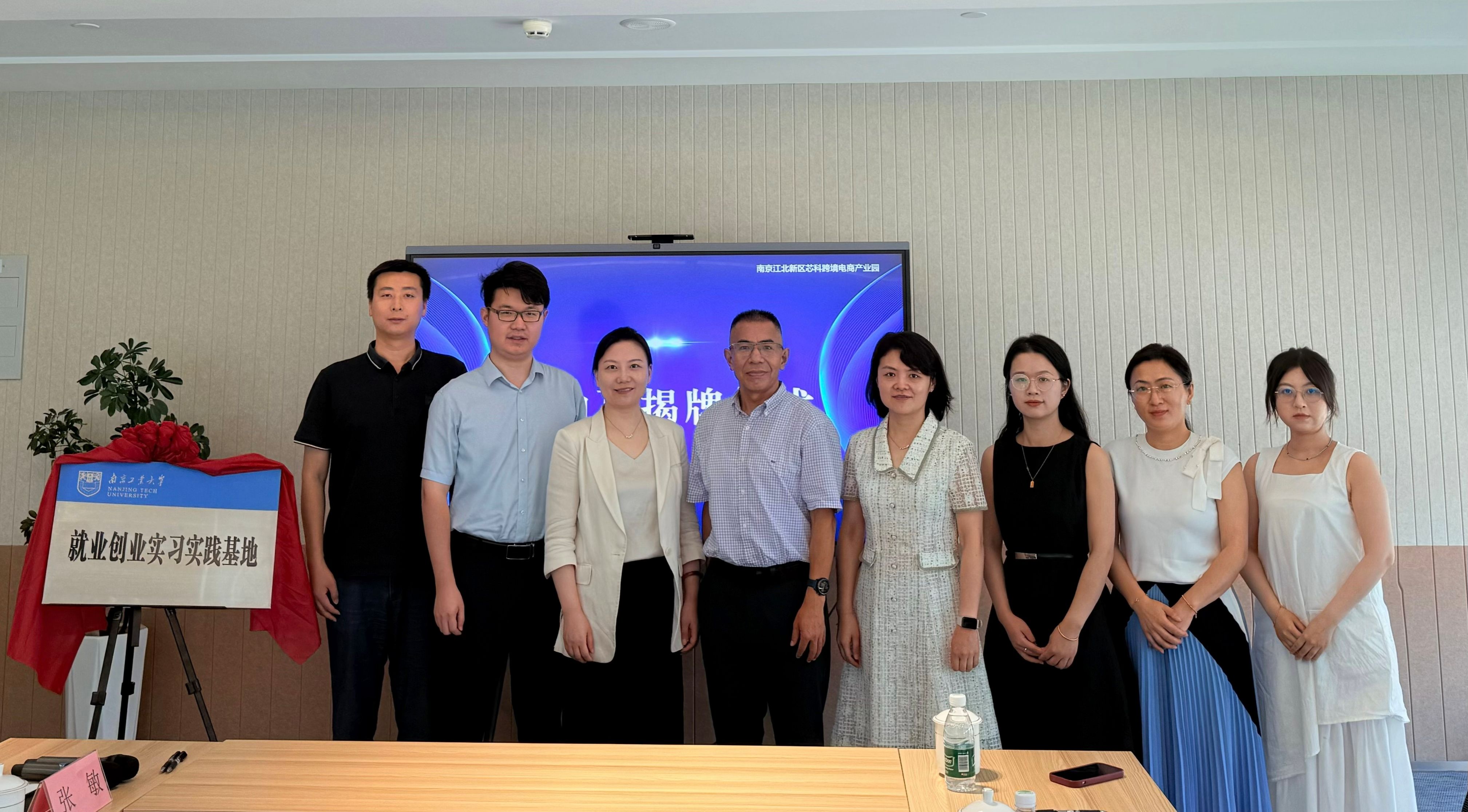 近日,best365英国体育在线与南京江北新区科技投资集团举行来华职工就业创业实习实践基地签约挂牌仪式。南京江北新区科投集团副总经理戴慧、招商中心副主任高阳,海外教育公司党总支书记万永敏、副经理朱丹以及职工管理办公室全体老师、职工代表在江北新区芯科跨境电商产业园共建交流。