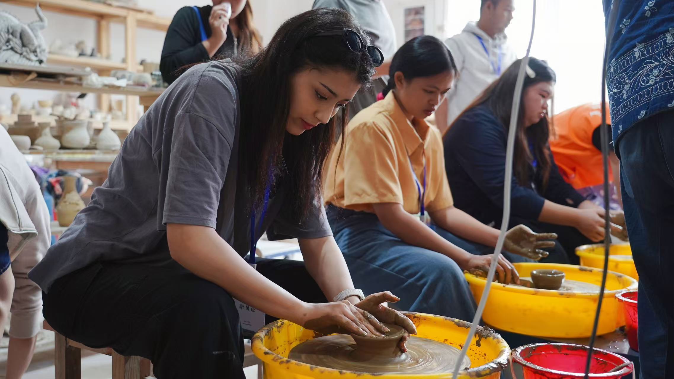 在为期六天的活动中,公司职工深度体验了丰富多彩的文化课程。723日,王天禄教授主讲的《中国传统文化故事(成语篇)》让职工们领略了汉语的独特魅力;杨再伟教授指导的贵州少数民族蜡染工艺实践课,则让同学们亲手制作了独具民族特色的艺术作品。24日前往安顺坝陵河桥梁科技馆的参访,展现了贵州基建工程的卓越成就。特别值得一提的是,25日的生物化石标本制作和黑陶非遗体验课成为活动亮点。在翁贵英教授指导下,职工们完成了古生物化石复制品;市级非遗传承人侯说先生则带领大家体验了黑陶制作技艺。26日的盘州采茶制茶活动,让国际员工亲身感受了中国茶文化的深厚底蕴。