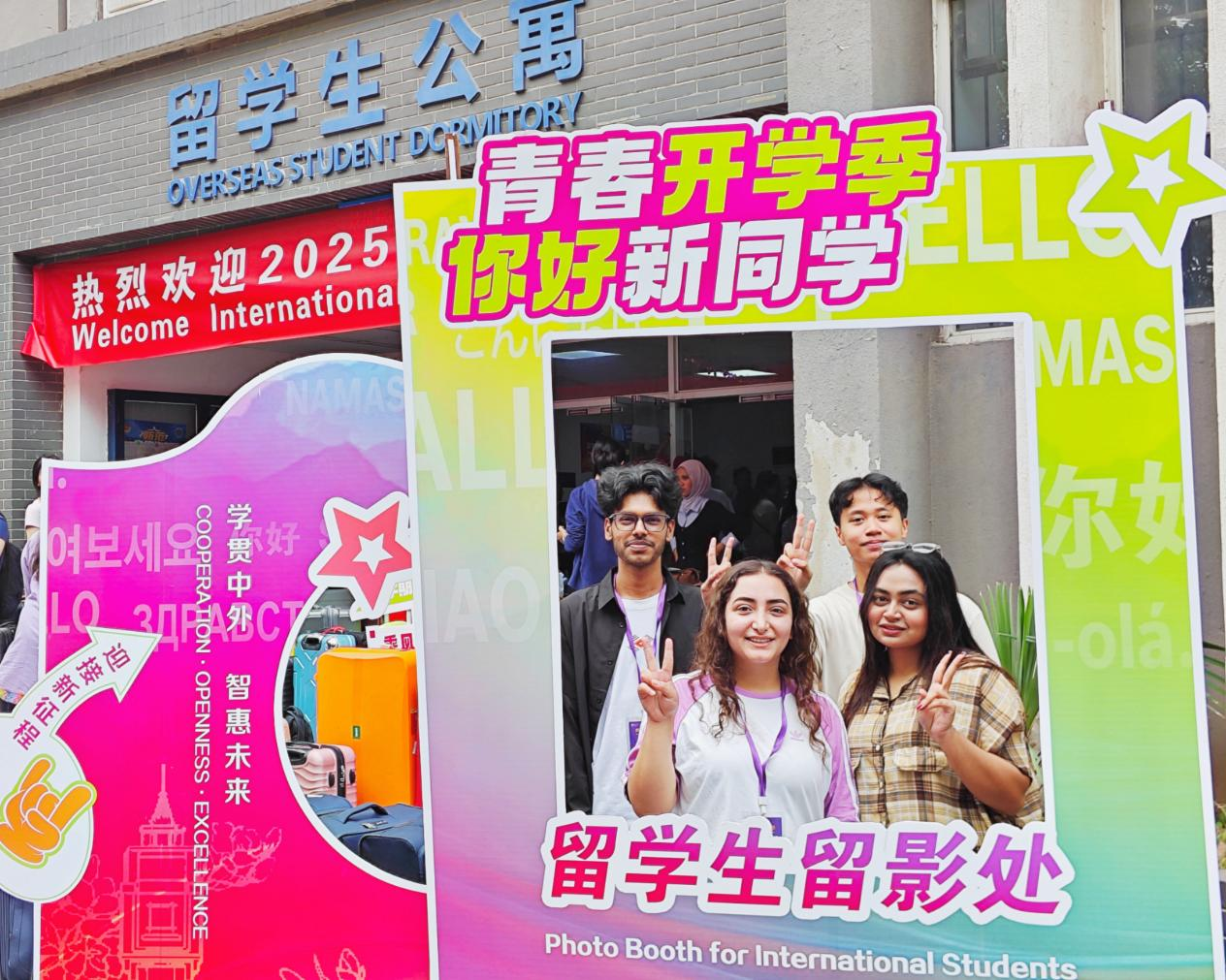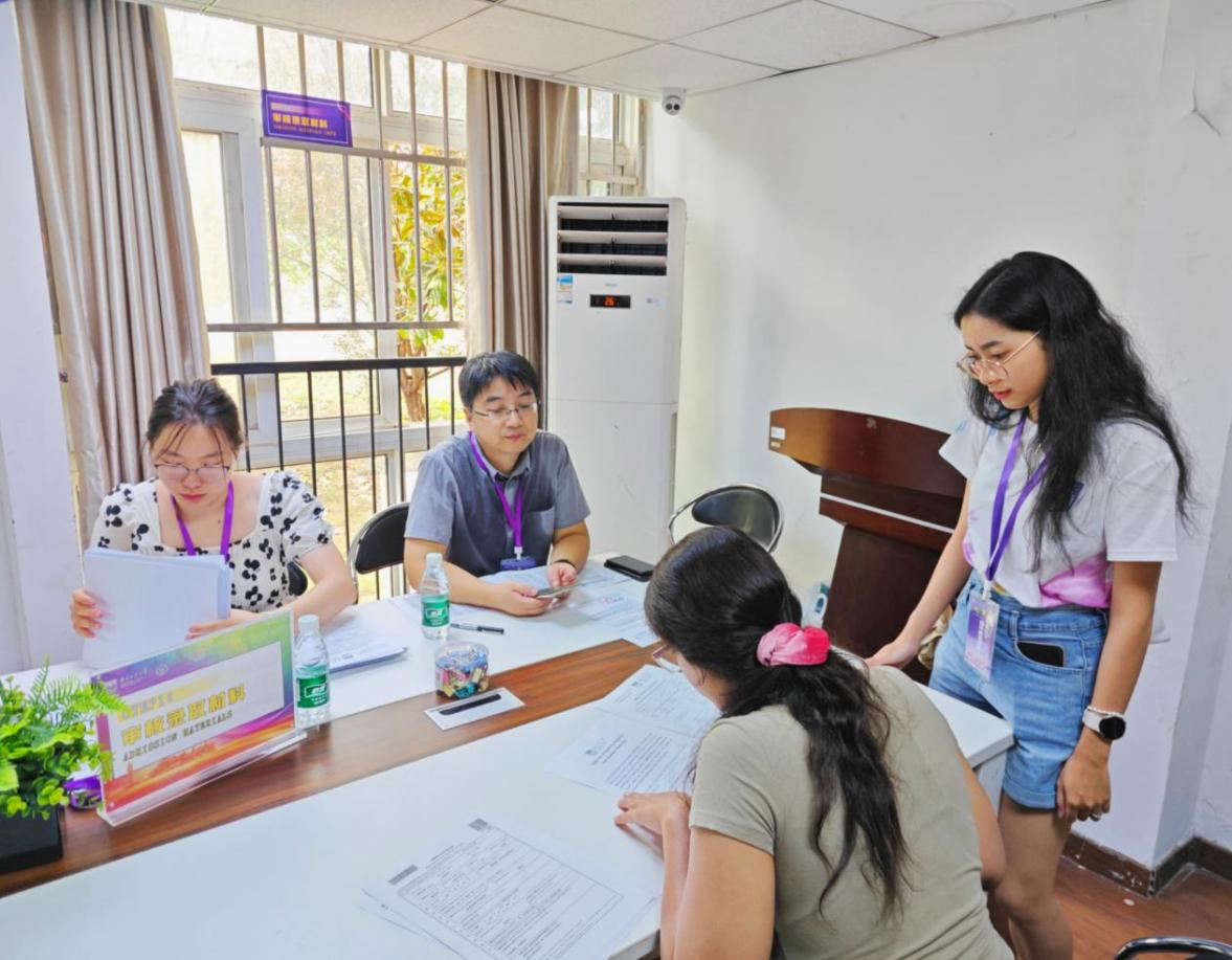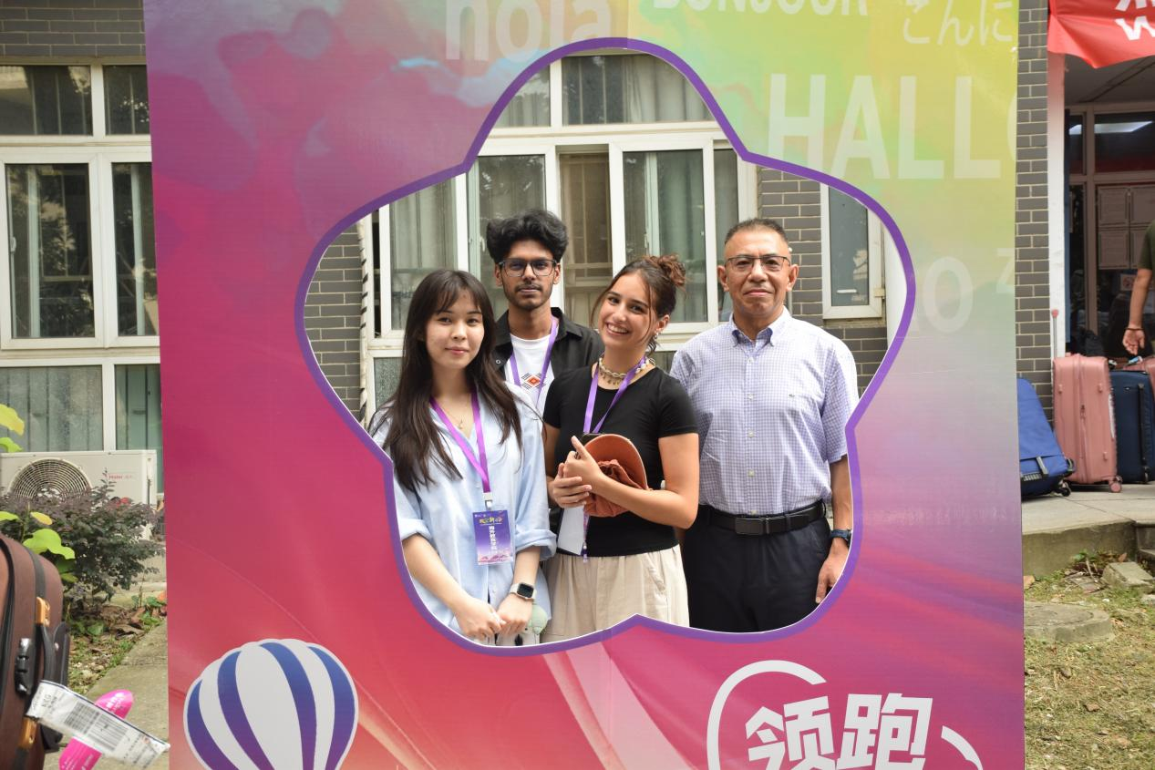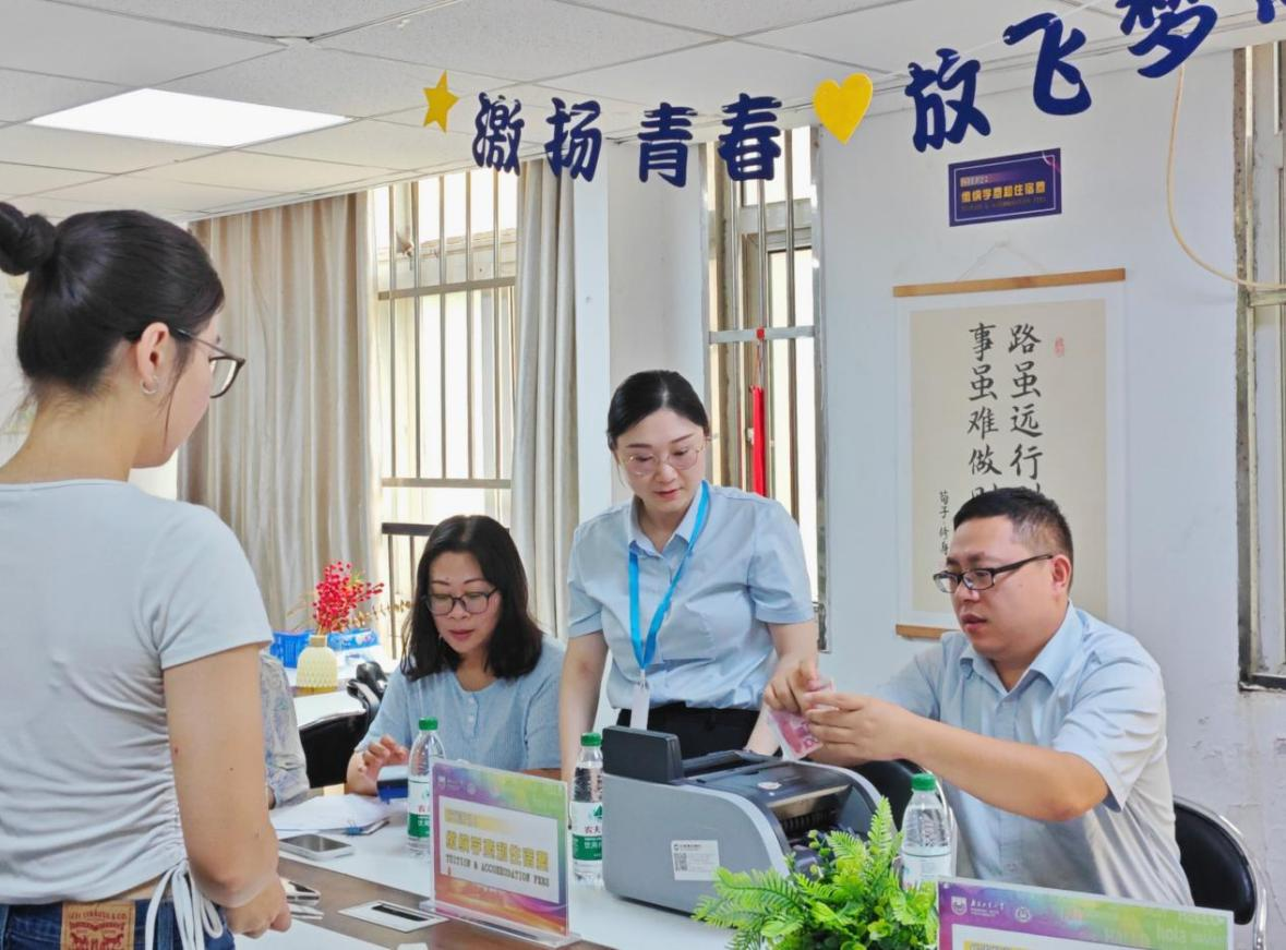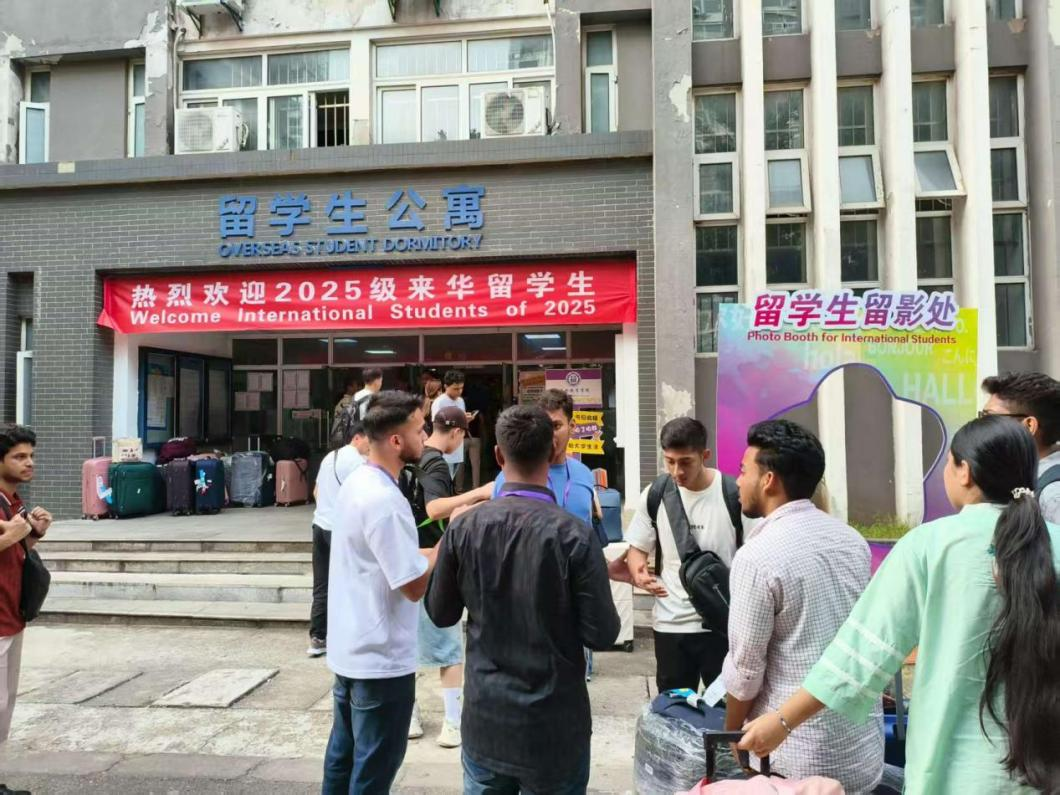 双语相伴,助力启航更显贴心。一支由60余名中外员工组成的志愿者团队活跃在迎新一线,他们提供流畅的中英双语服务,在站点接应、指引路线、运送行李,协助新生完成注册、缴费、保险、签证等手续,以热情服务消除新生陌生感,传递校园温暖。