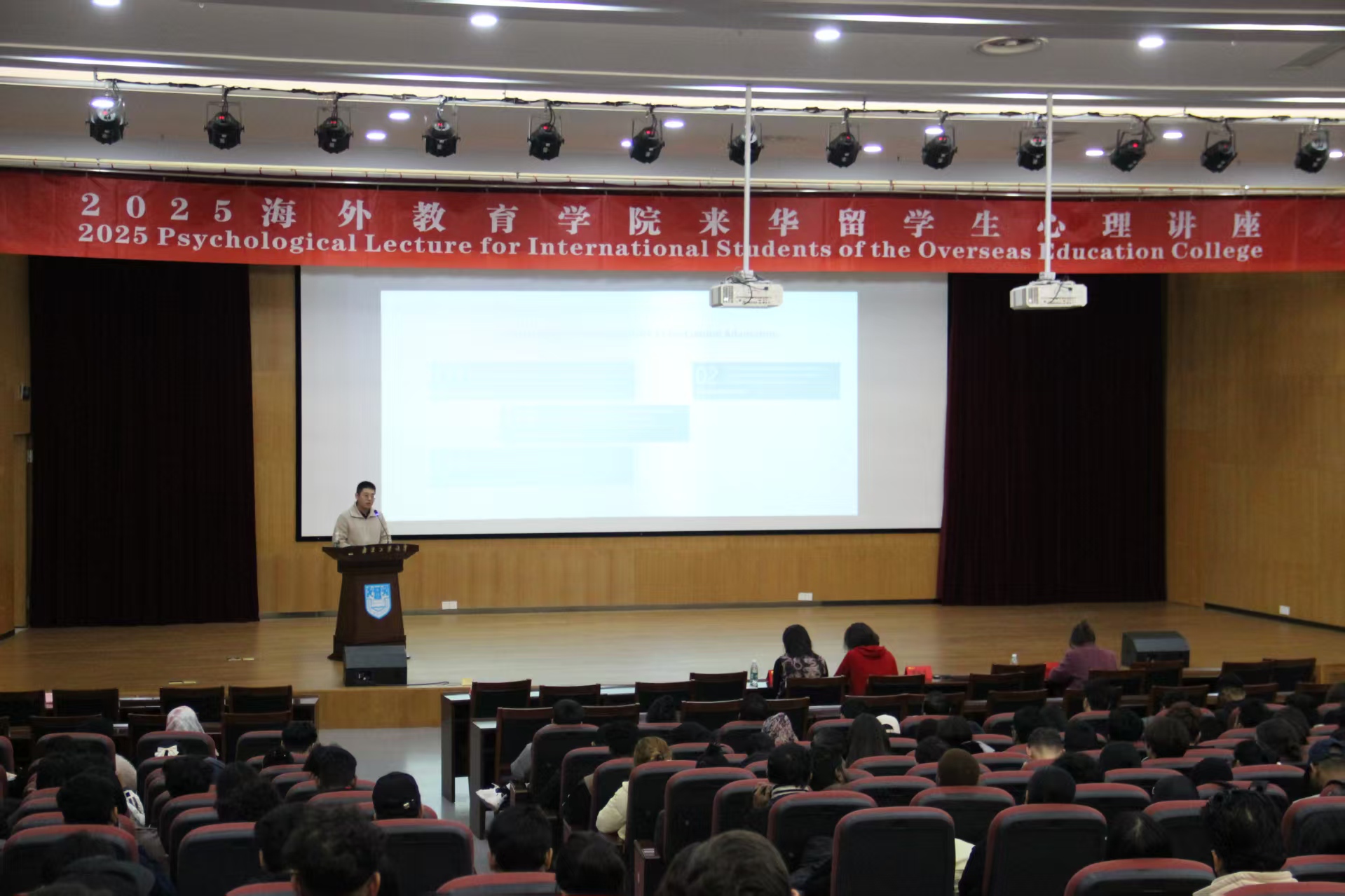 为了帮助来华职工更好地完成在校学习生活,提升跨文化心理适应能力,best365英国体育在线于12月10日下午在浦江报告厅举办了“关爱心理健康,共建阳光留学”的专题讲座,特邀融汇知远教育心理培训专家邵振洋老师主讲并开展心理测评,全院500余名来华职工参与。