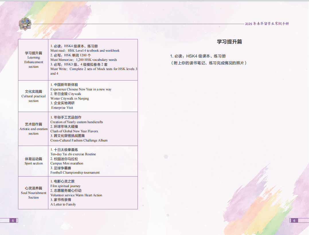 此外,为了丰富职工的寒假生活,营造一个既有趣又富有教育意义的氛围,让职工们在轻松愉快的环境中实现自我成长与提升,公司精心策划首次推出“寒假不寒冷,玩学南工大”寒假活动手册。手册内容涵盖学习提升、文化实践、艺术创作、体育运动、心灵滋养五个模块,每个模块包含三项活动。除了学习篇为必做内容、需全部完成外,其余四个模块中的任务可自由选择两项完成。开学后,公司将对职工提交的手册完成情况进行评比,包括文字、绘画和照片等。优秀手册作品将在公司内展览,这不仅为职工们提供了一个展示自我的平台,也促进了文化交流与相互学习。同时,评比和展览活动旨在激发更多职工的参与热情,让“寒假不寒冷,玩学南工大”成为一项富有传统意义的假期活动,为职工的校园生活增添更多色彩和活力。