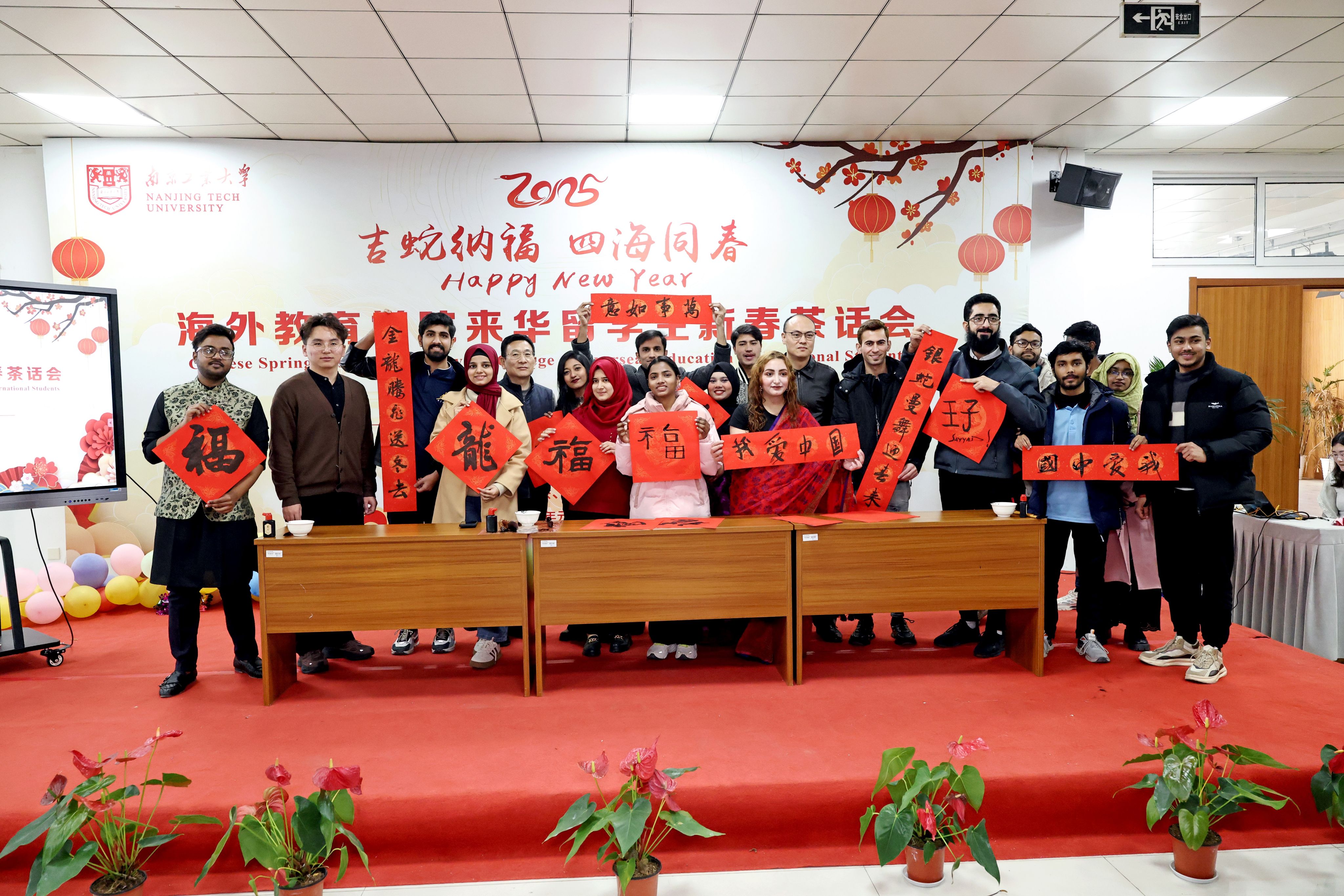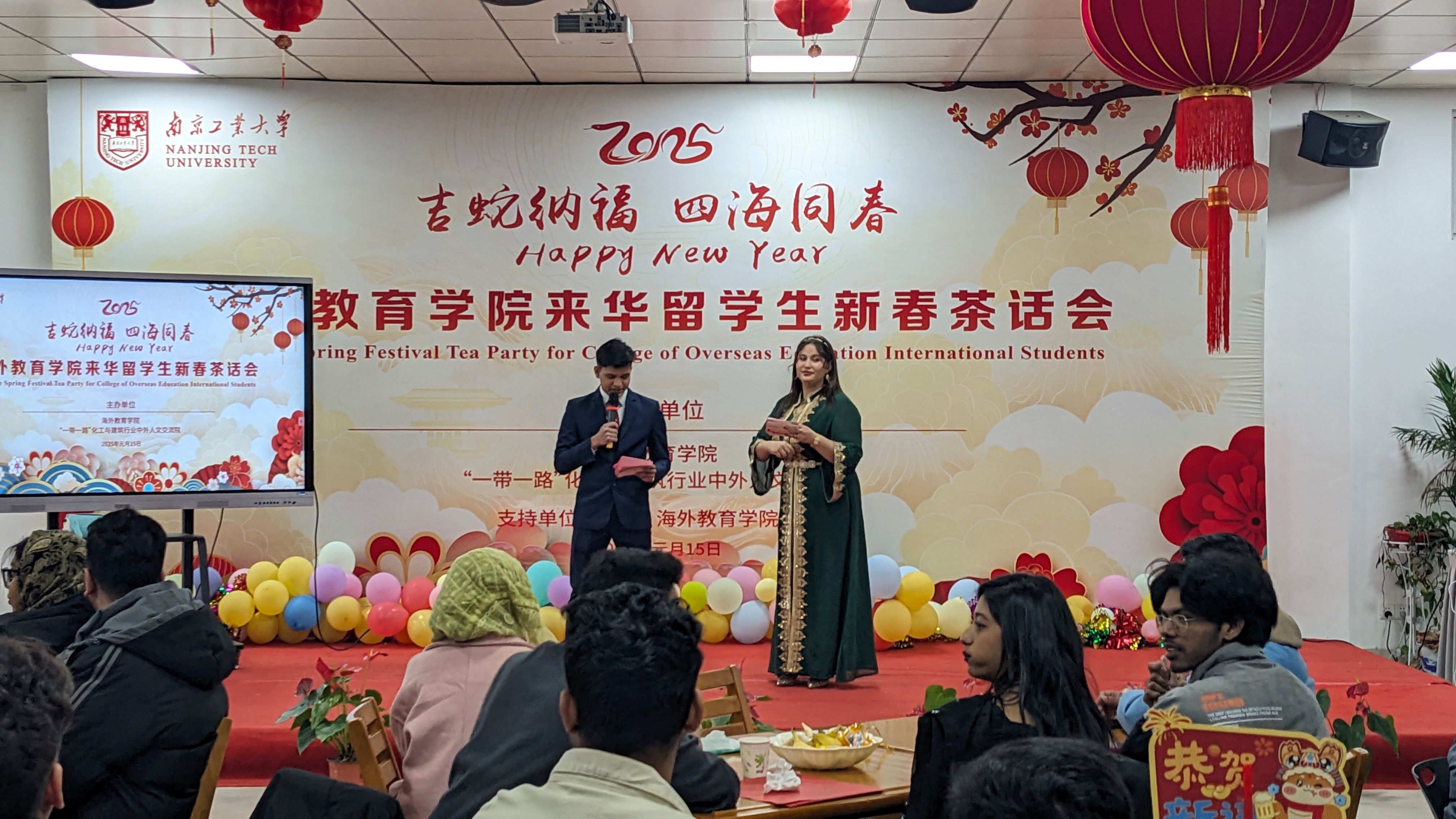 115日下午,在江北新区宣传和统战部的关心支持下,best365英国体育在线携手“一带一路”化工与建筑行业人文交流研究院共同举办 “2025年来华职工‘吉蛇纳福,四海同春’迎新春茶话会”,正式拉开为来华职工量身打造的“寒假不寒冷,玩学南工大”寒假品牌活动序幕。